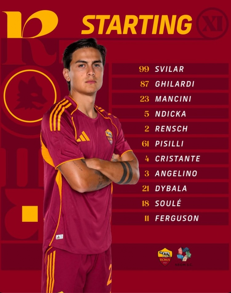 08月 21 2025 0 罗马友谊赛首发:迪巴拉领衔,苏莱、弗格森、皮西利、曼奇尼在列 xiaoqiao 2025-08-21 意甲 80 8月16日讯 本周六,罗马将与沙特球队新未来体育进行一场友谊赛,迪巴拉首发出场,苏莱、弗格森、曼奇尼在列。门将:斯维拉尔后卫:安吉利诺、伦施、曼奇尼、恩迪卡、丹尼埃勒-吉拉迪中场:克里斯坦特、皮西利前锋:迪巴拉、苏莱、埃文-弗格森